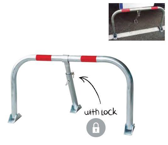 Barrera parking protectora de espacio. Abatible y que dispone de cerradura para proteger su posición.