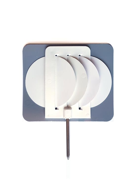 El cartel tiene unas medidas de 92 milímetros de ancho por 78 milímetros de alto. Dispone de un pincho de acero de 38 milímetros. Las medidas totales del portaprecio son 92 milímetros de ancho por 116 milímetros de alto.