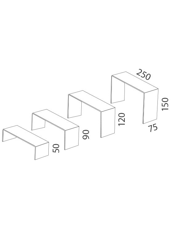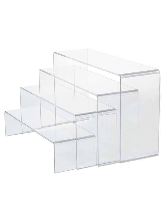 Disponible en set de 4 podiums donde el mayor mide 250 x 150 x 75 mm.