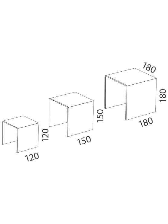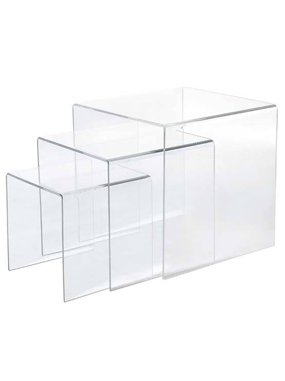 Disponible en set de 3 podiums cuadrados donde el mayor mide 180 x 180 x 180 mm. Los precios especificados corresponden a un set.