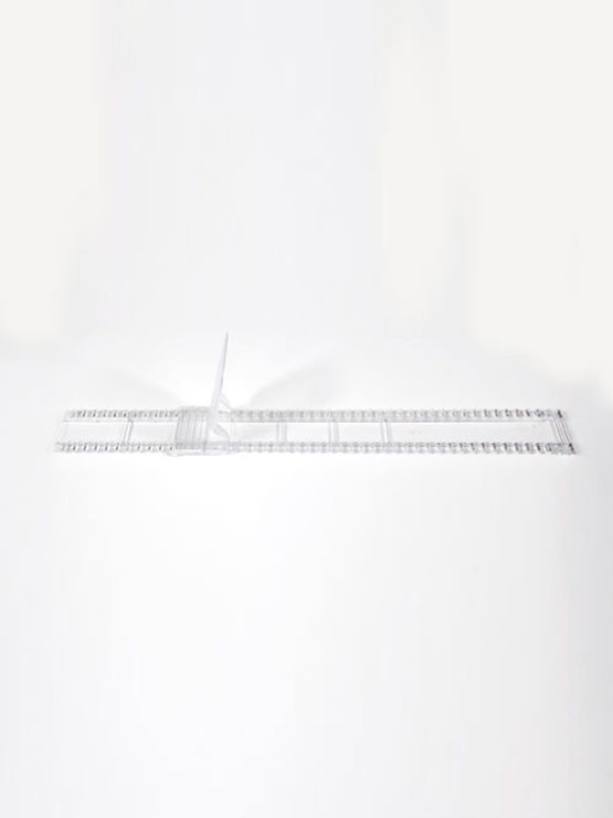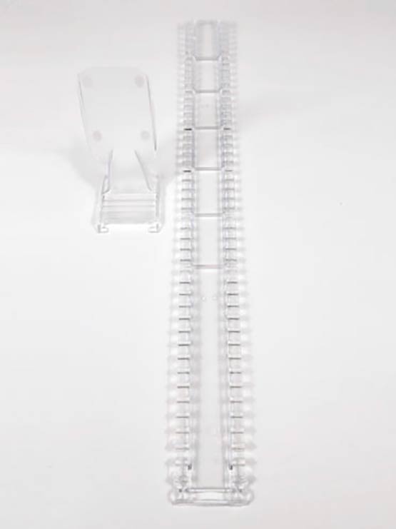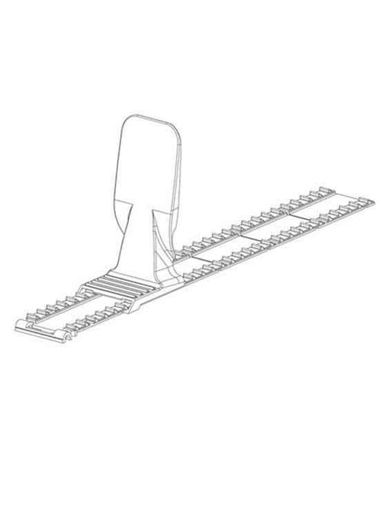 • Riel extensible: 530 mm de longitud total, dividido en 5 segmentos de 68 mm. Permite personalizar la extensión según las dimensiones del estante.