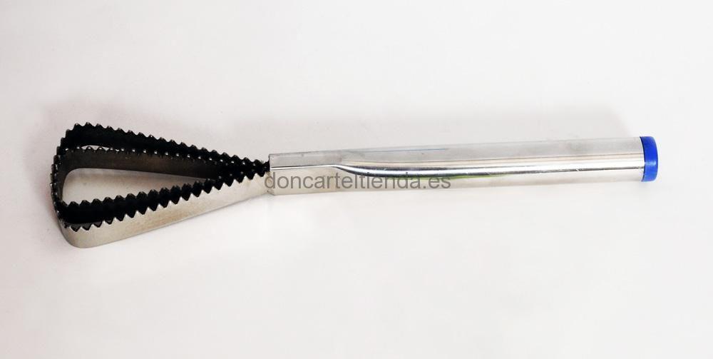 El escamador fabricado en acero inoxidable es un accesorio imprescindible para los profesionales de la pescadería, permitiendo escamar el pescado de manera rápida y eficiente. Este utensilio está diseñado con materiales de alta calidad y durabilidad, asegurando una larga vida útil.
