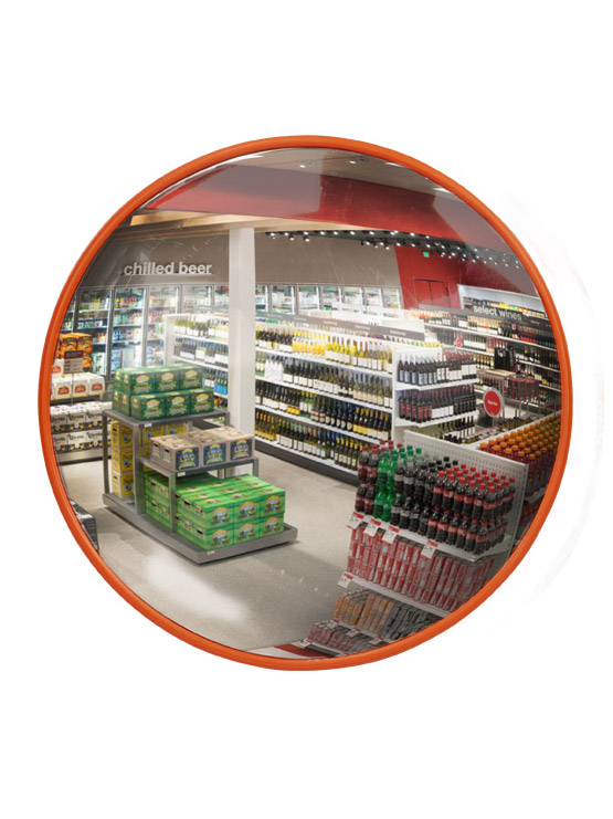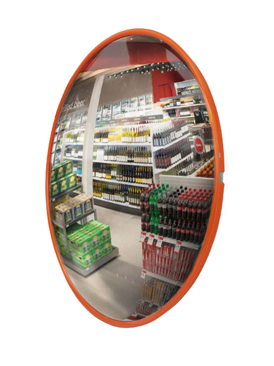 Espejo Convexo para interiores, de 45 centímetros de tamaño. Lente fabricada en Policarbonato con alta resistencia al impacto y trasera de PVC. Tiene un ángulo de visión de 130º, que puede ajustarse según las necesidades. Incluye el anclaje para su instalación a pared.