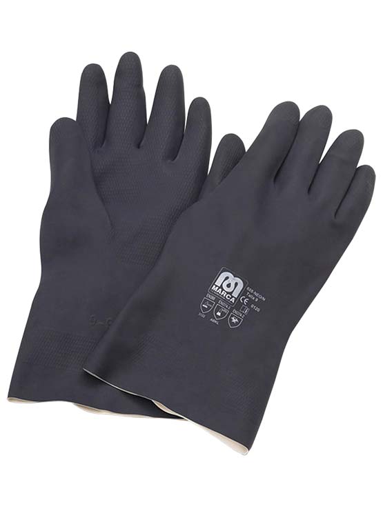 Guantes de protección química que se suministran en talla única. Peso 116 gramos. El precio corresponde a una pareja de guantes.