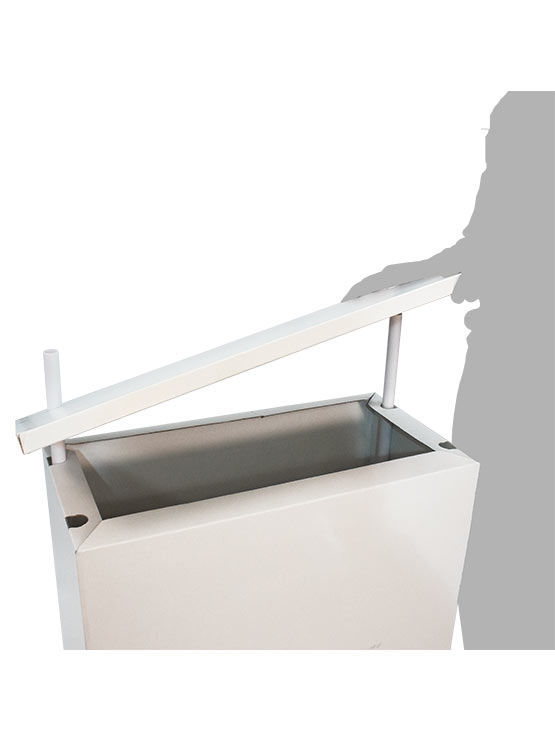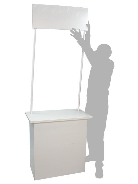 Mostrador cartón con copete fabricado en cartón blanco estucado, 2 caras. e=1.5mm. Barras en PVC. Impresión en vinilo adhesivo opcional. Es muy liviano y puede ser ensamblado rápidamente en menos de 5 minutos (no se requieren herramientas). Completamente desmontable, tiene un copete o encabezado de 700x300mm (con barras de PVC) para mostrar logotipos o gráficas publicitarias de la compañía. Es excelente para ferias, puntos de venta, actos promocionales en centros comerciales o como una pantalla de publicitar para su negocios en cualquier exposición o feria comercial. Revisa las imágenes adjuntas para ver las dimensiones totales de este modelo.