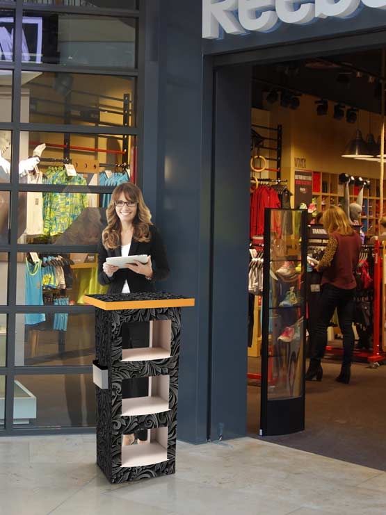 Mostrador de cartón con estantes fabricado en cartón blanco estucado, 2 caras. e =1.5mm. Baldas fabricadas en cartón e=5mm. Puede adquirir este mostrador de cartón en blanco y también impreso en vinilo adhesivo con el diseño que nos envíe.  Revisa la imagen inferior para ver todas las medidas de estemodelo. Es fácil de montar y muy liviano porque está fabricado con planchas de cartón de 5 milímetros de grosor. Dispone de un espacio adicional de almacenamiento gracias a sus tres estantes y un portafolletos para documentos promocionales, London es ideal para ser utilizado como expositor o como mostrador en los puntos de venta, eventos de ferias, tiendas o para cualquier promoción temporal. Puede personalizarlo y crear un producto con una imagen impactante que llame la atención, mediante la impresión con vinilo adhesivo. Consúltenos si no dispone de diseño creado.