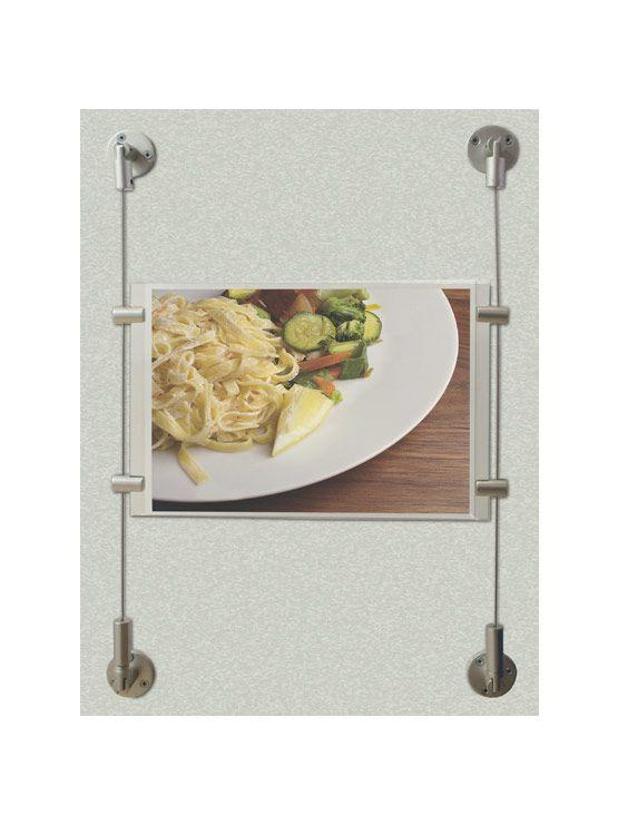 Comprar mediante piezas un completo sistema cable kit puede llegar a ser complejo pues requiere planificar la fijación superior, la inferior, los marcos (en el caso de los iluminados), las carpetas (en el caso de los normales), carriles, pinzas, soportes, etc.