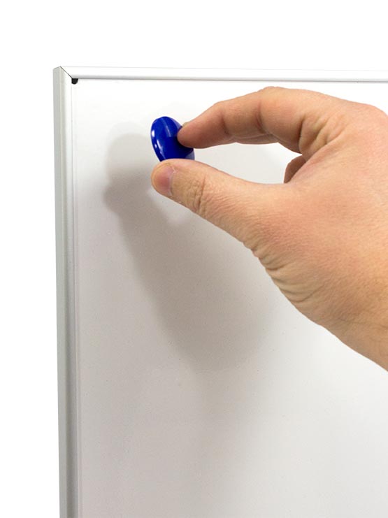 La pizarra viene con un marco resistente y duradero, que protege la superficie de la pizarra y le da un aspecto profesional. El marco está hecho de aluminio, lo que lo hace resistente a la corrosión y a los golpes, y tiene un acabado en color plateado brillante que aporta elegancia al conjunto.