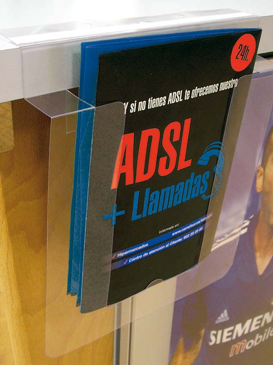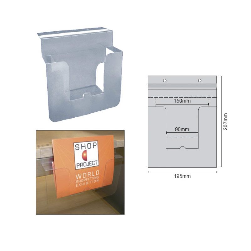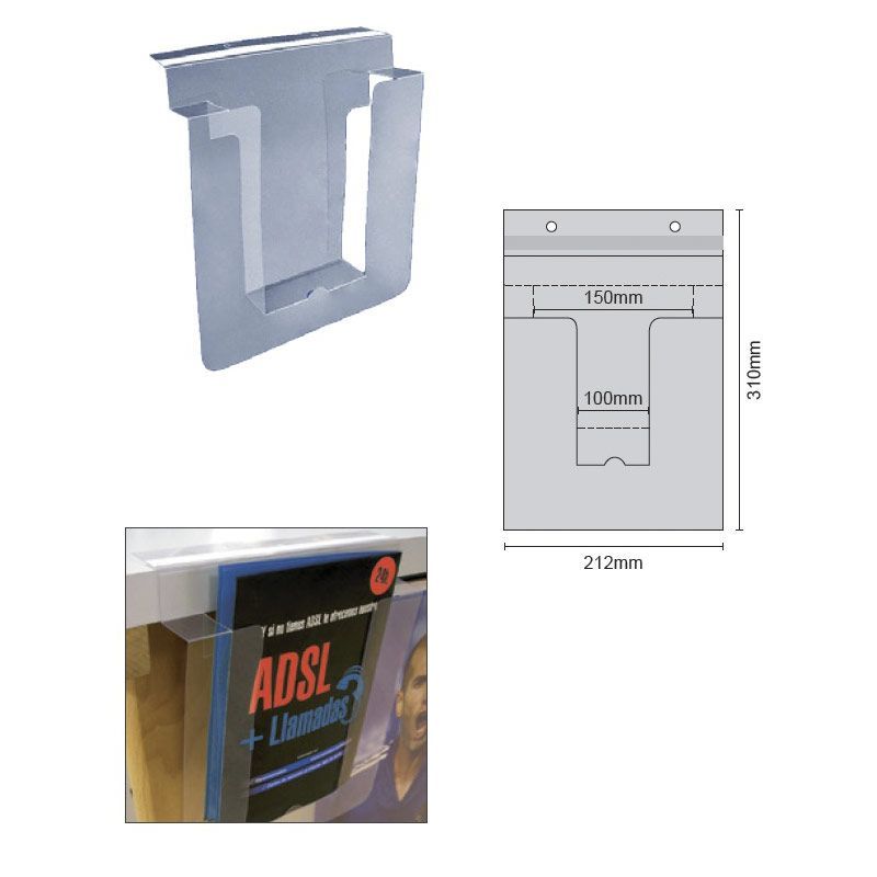 Porta Folletos PVC con Adhesivo y Agujeros de color transparente. Dispensador de PVC con adhesivo, adecuado para documentos disponible en varios tamaños e ideal para estantes.
