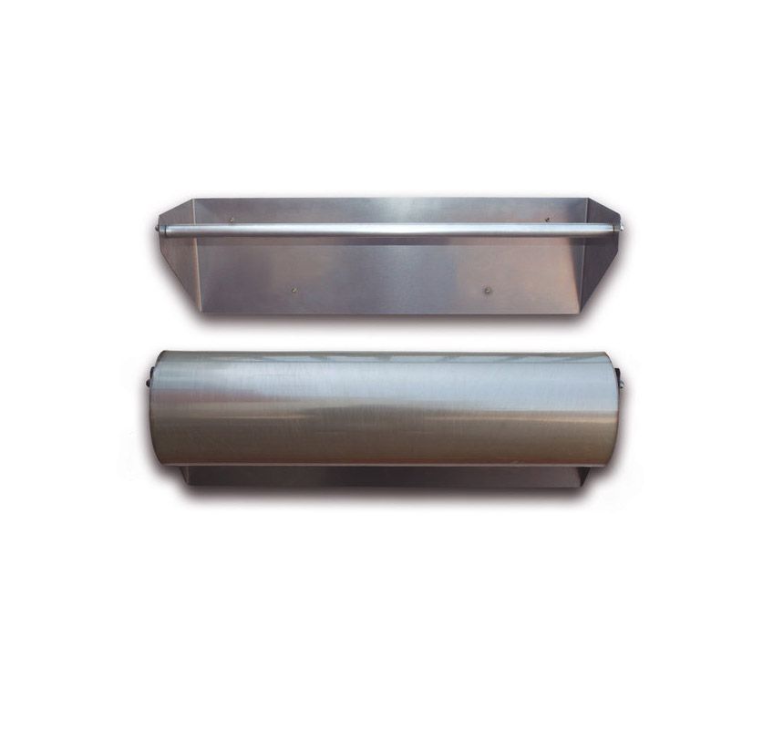 Porta rollos Inox. Dispensador de Film fabricado en chapa de acero inoxidable. Ideal para entornos profesionales en los sectores de la hostelería y de la alimentación. Sencillo, de fácil colocación y limpieza. Eficacia y durabilidad. BOBINA FILM NO INCLUIDA.