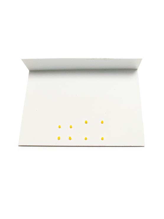 Portaprecios pescadería UVI rotulado fabricado en GlassPack con números en relieve intercambiables de color amarillo, doblado por la parte superior en forma de cabaña. Incluye juegos de números para los precios p.v.p. en euros por kilo del producto, con un tamaño de 20 milímetros de altura para las unidades y de 15 milímetros de altura para los decimales, con información de producto homologado con la nueva normativa.