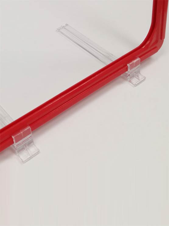 Es muy fácil de instalar, simplemente se debe colocar en la parte trasera del marco y luego apoyarlo en la superficie de exhibición. Es ideal para su uso en exhibiciones, ferias, eventos y tiendas donde se necesite exponer marcos de plástico ABS.