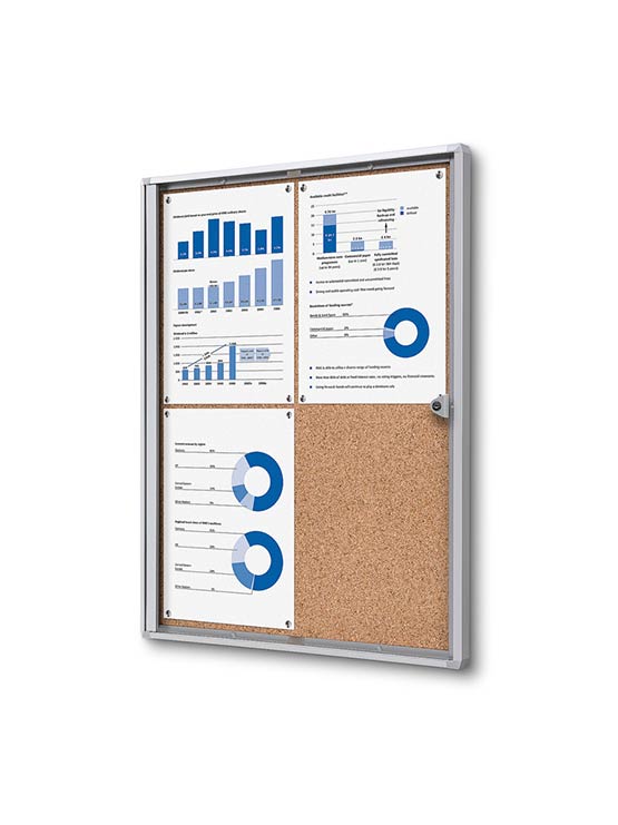 Ideal para la fijación de documentos mediante chinchetas o imanes. El tablón de anuncios es un sistema común de publicación de información que mejora los anuncios en la comunidad, avisos en oficinas o mensajes en colegios y centros escolares. Está diseñado para llamar la atención sobre publicaciones importantes de una sola hoja que se fijan mediante imanes y que se pueden cambiar en cualquier momento. Este tablón de anuncios puede tener una o dos cerraduras. El bloqueo proporciona acceso controlado a la superficie de publicación. Este vitrina tablón proporciona el área de visualización perfecta para carteles, anuncios, mensajes, gráficos, fotos o recuerdos y son ideales en áreas comunes de la comunidad, escuelas, universidades y supermercados.