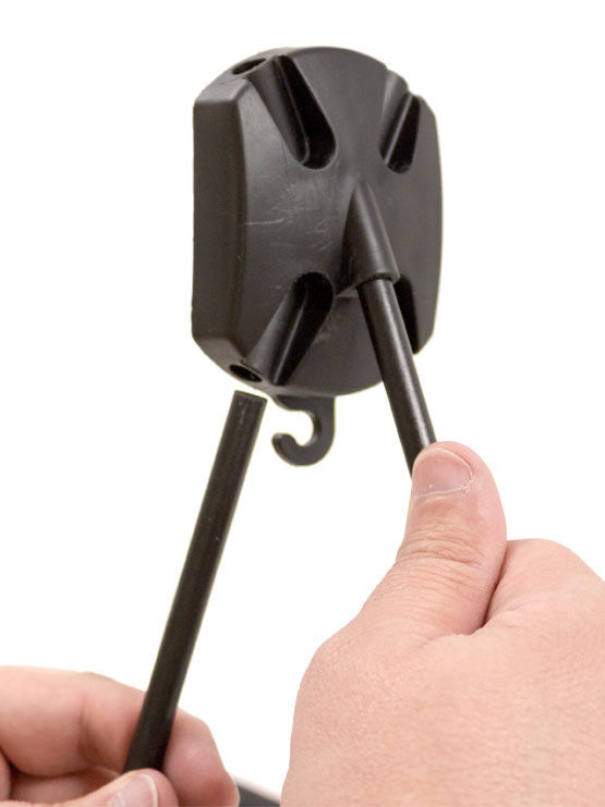 1. Arme la X fijando los cuatro elementos flexibles a la parte plástica central.
